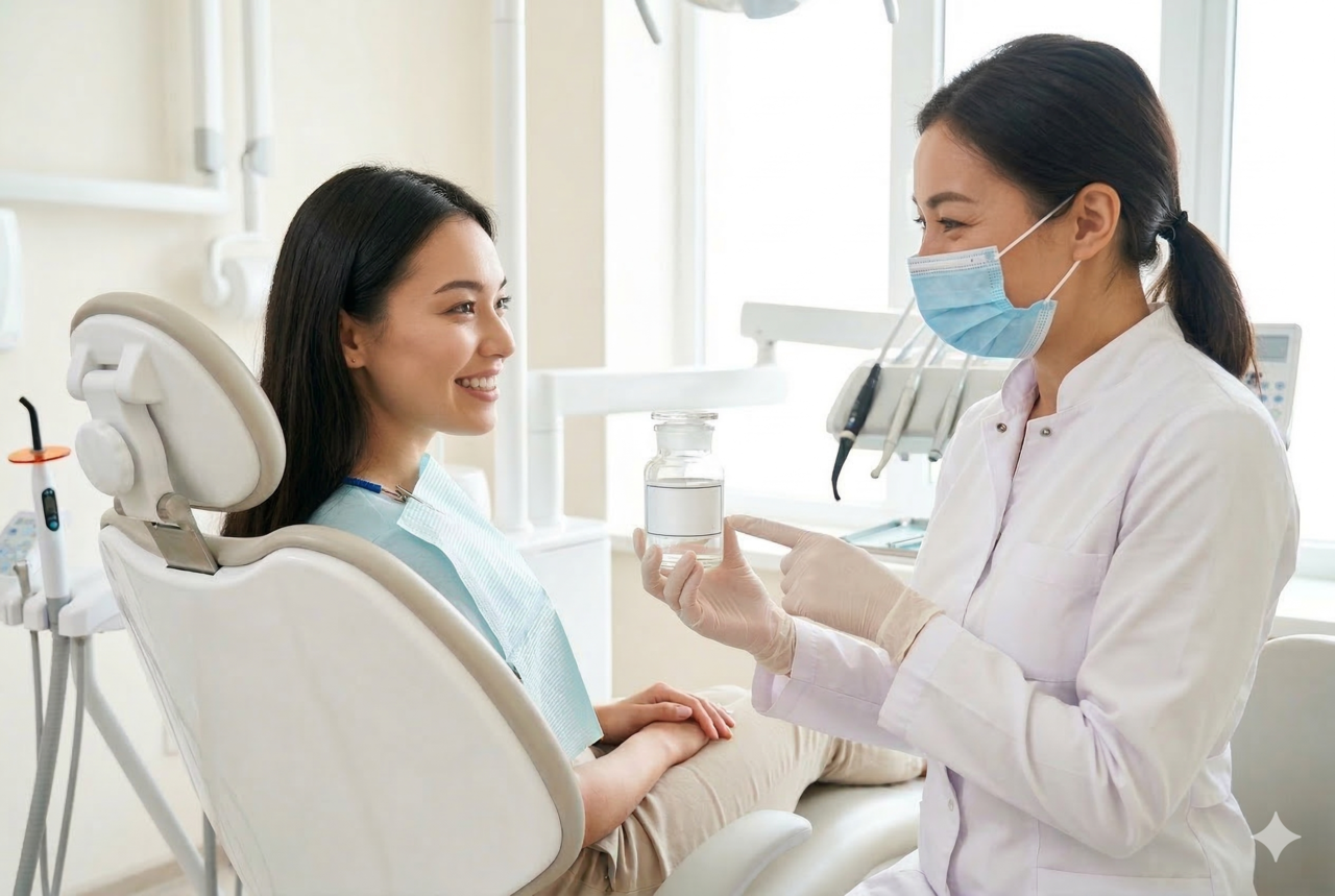 まず、歯科医院でのポリリン酸ホワイトニングは、主に過酸化水素や過酸化尿素といった「漂白成分」と組み合わせて使用されます。歯科医師や歯科衛生士が、これらの医薬品である漂白剤を歯に塗布する際に、ポリリン酸を併用することで、漂白効果を高めつつ、歯へのダメージや知覚過敏のリスクを軽減する目的で活用されることが多いです。つまり、ポリリン酸は、医療ホワイトニングの効果を補助し、より快適に施術を受けるためのサポート成分として機能します。歯そのものの色を内側から白く「漂白」できるのは、この漂白成分のおかげです。