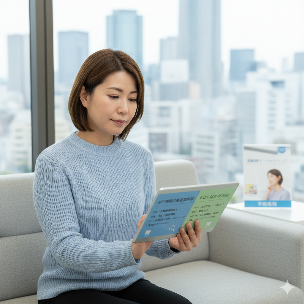 当院では、患者さま一人ひとりのお口の状態を丁寧に確認し、SPTが必要なのか、メンテナンスで十分なのかを見極めたうえで、最適なケアをご提案しています。